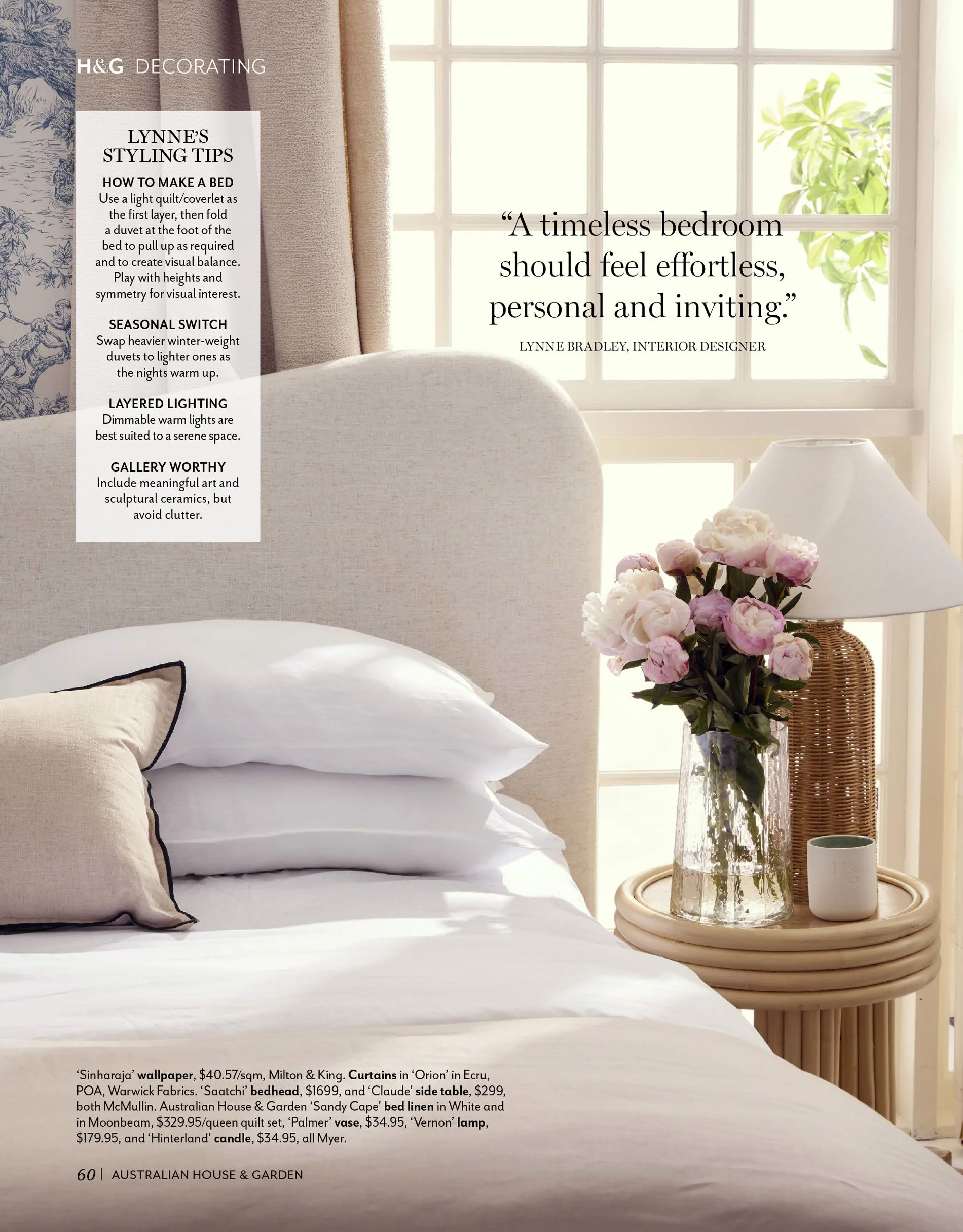 ““A timeless bedroom should feel effortless, personal and inviting.” — Lynne.
