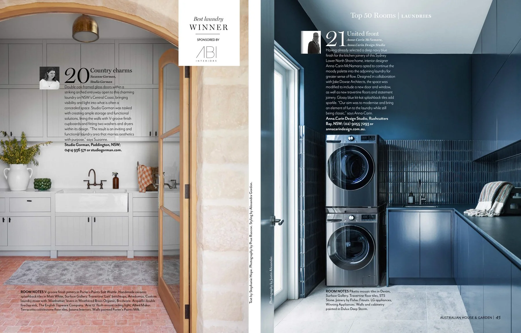 House & Garden ‘Top 50 Rooms’ FINALIST Best Bathroom & Best Laundry / Nov 2023